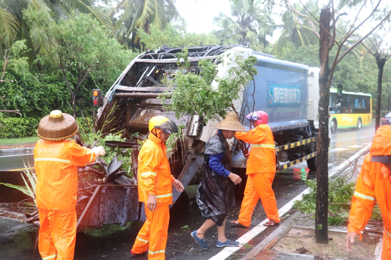 針對臺風可能會產(chǎn)生的影響,7月22日晚,生產(chǎn)管理中心啟動了應急預案,迅速成立4支應急保障隊伍對臺風暴雨期間需要緊急處置的環(huán)境衛(wèi)生問題,在30分鐘內(nèi)到達事發(fā)現(xiàn)場,及時予以處置。安排保潔人員1700人全員上崗, 調(diào)配了140臺大型環(huán)衛(wèi)作業(yè)車輛隨時待命,確保快速恢復臺風過后的三亞、陵水區(qū)域的環(huán)境衛(wèi)生秩序。