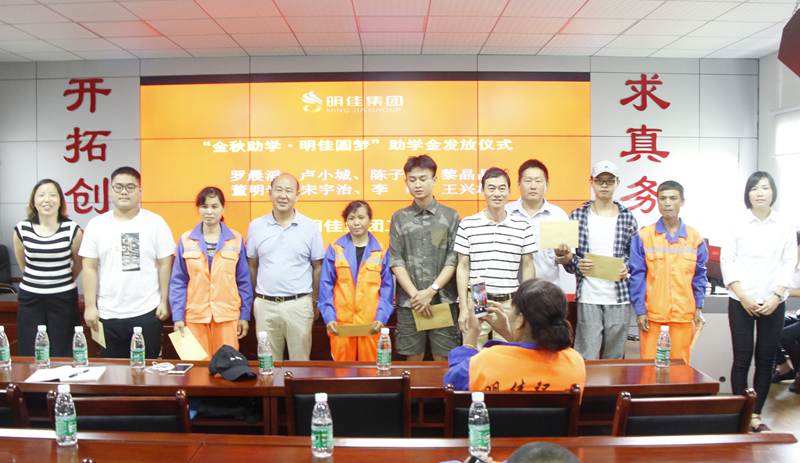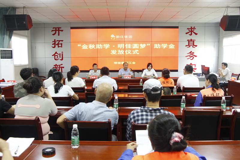 8月28日上午,明佳集團(tuán)工會(huì)“金秋助學(xué)·明佳圓夢(mèng)”助學(xué)金發(fā)放儀式在集團(tuán)公司三樓會(huì)議室舉行,為8個(gè)考取大學(xué)的職工子女發(fā)放助學(xué)金共計(jì)9600元?偛藐愒、副總經(jīng)理鐘寒參加發(fā)放儀式,儀式由工會(huì)主席高斐斐主持。