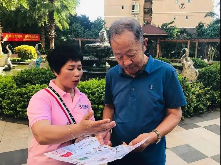 活動伊始,工作人員向小區(qū)居民分發(fā)了垃圾分類宣傳冊,