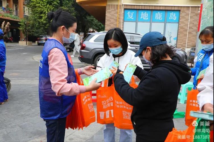 現(xiàn)場(chǎng)分發(fā)垃圾分類(lèi)指引圖冊(cè)、面對(duì)面講解