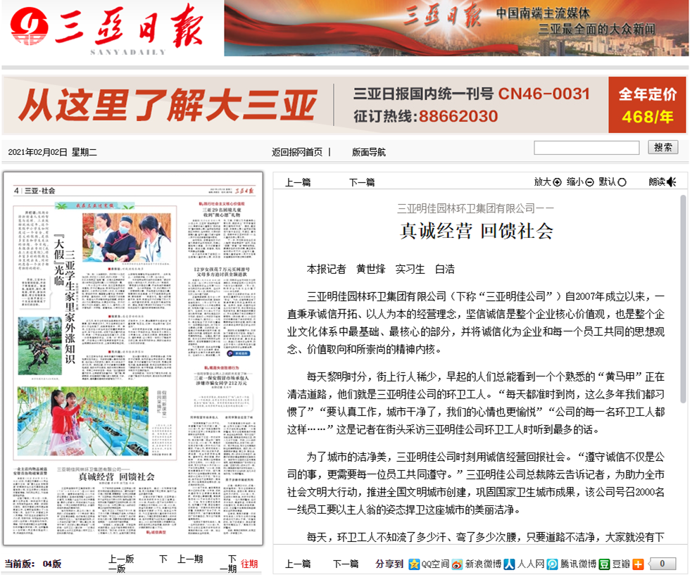 三亞明佳園林環(huán)衛(wèi)集團(tuán)有限公司(下稱“三亞明佳公司”)自2007年成立以來,一直秉承誠信開拓、以人為本的經(jīng)營理念,堅信誠信是整個企業(yè)核心價值觀,也是整個企業(yè)文化體系中···